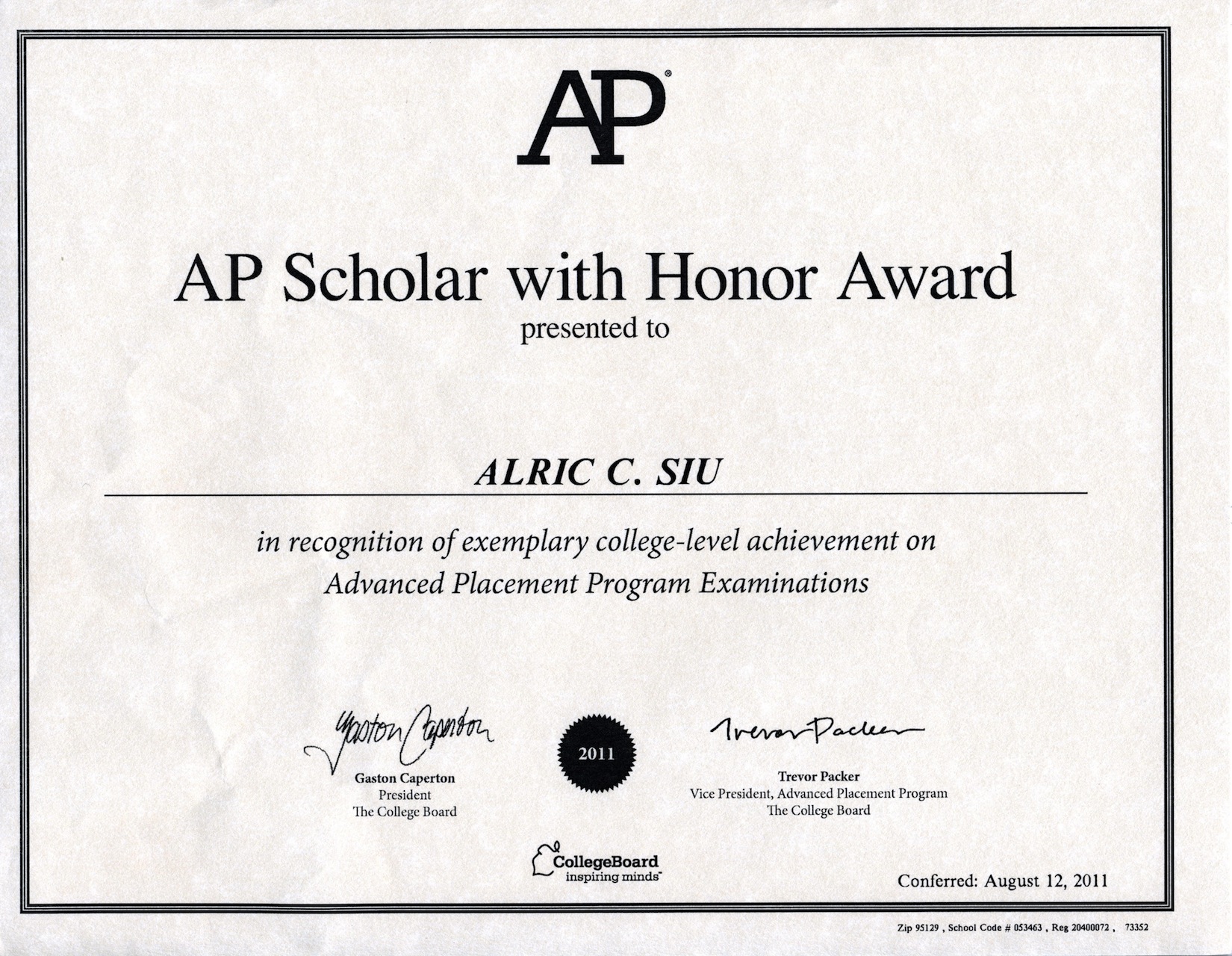 AP Scholar with Honor Award
