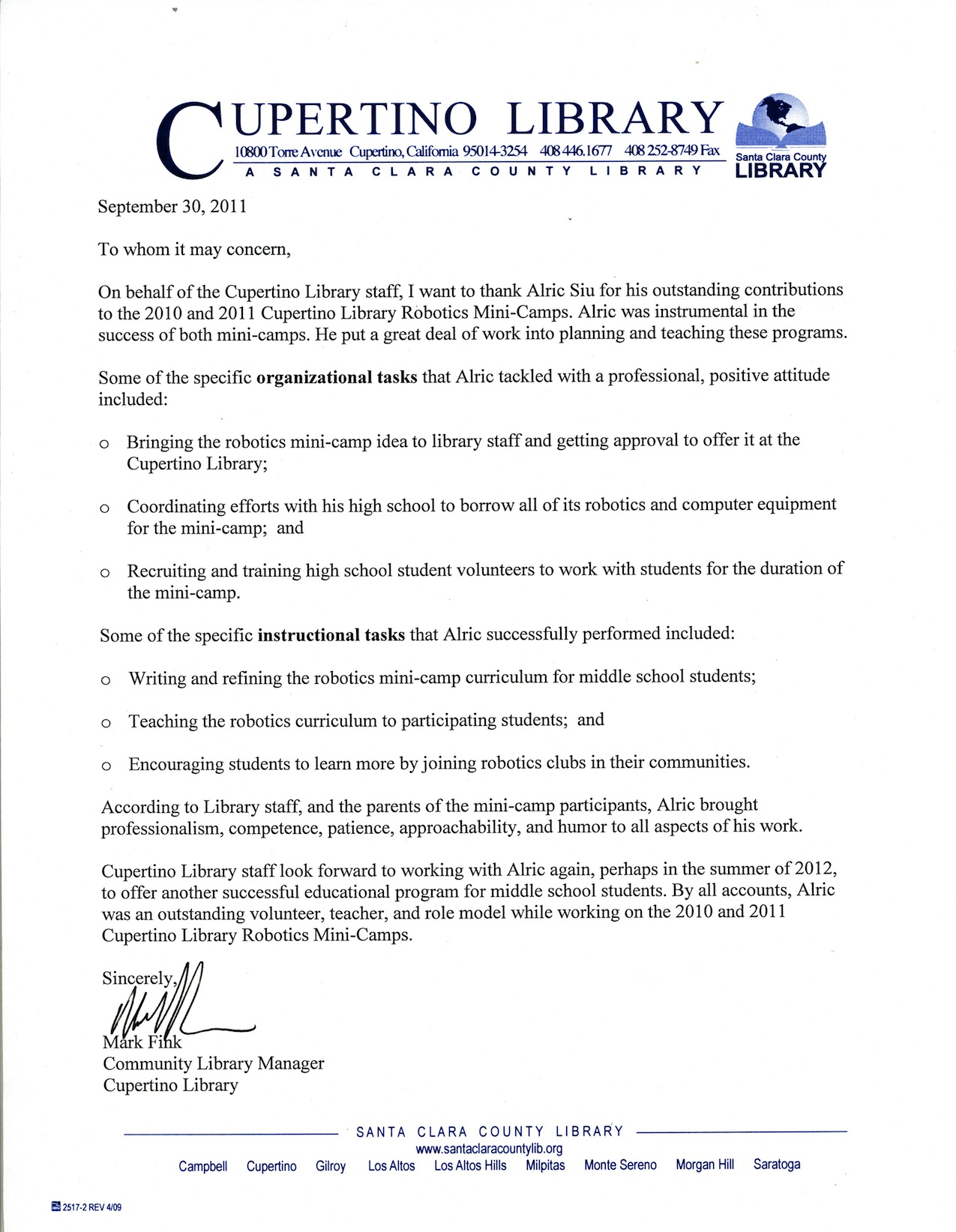 Mark Fink - Cupertino Pubalic Library