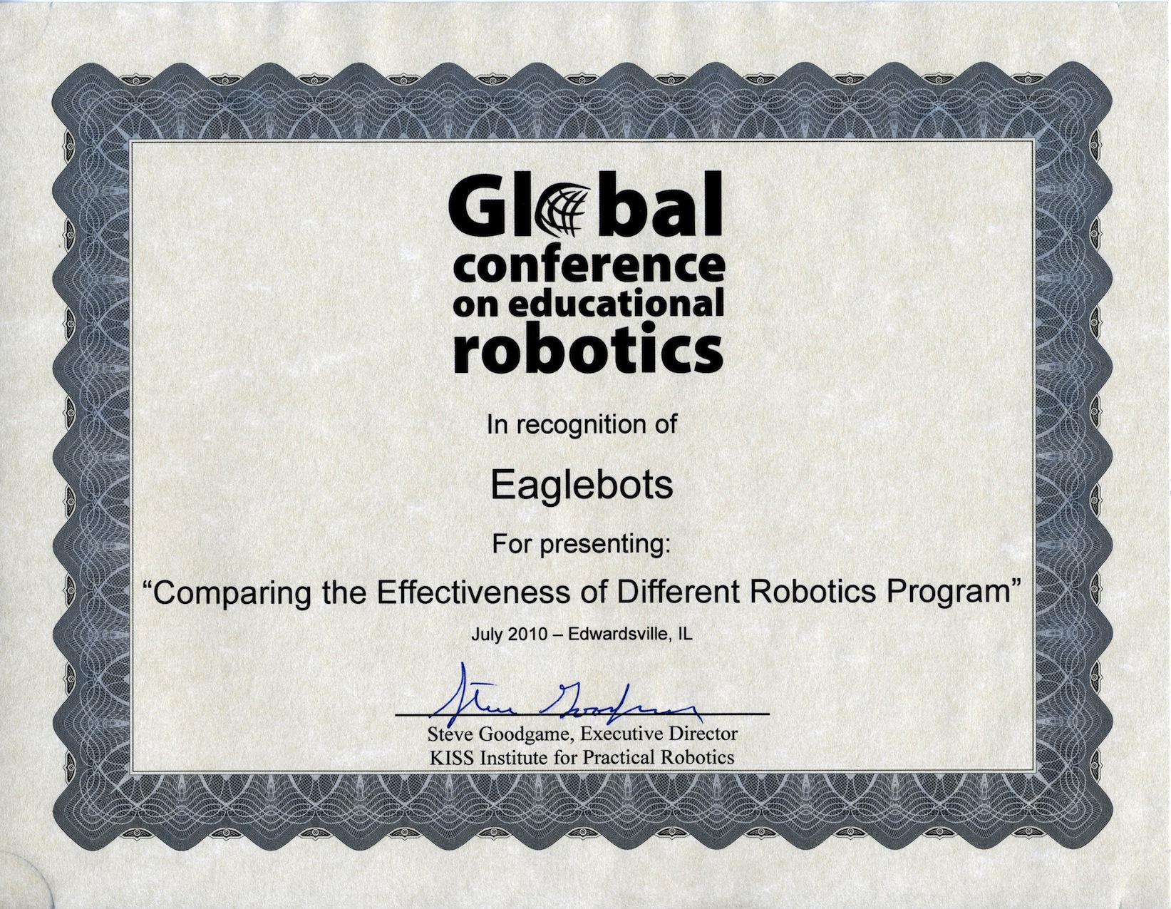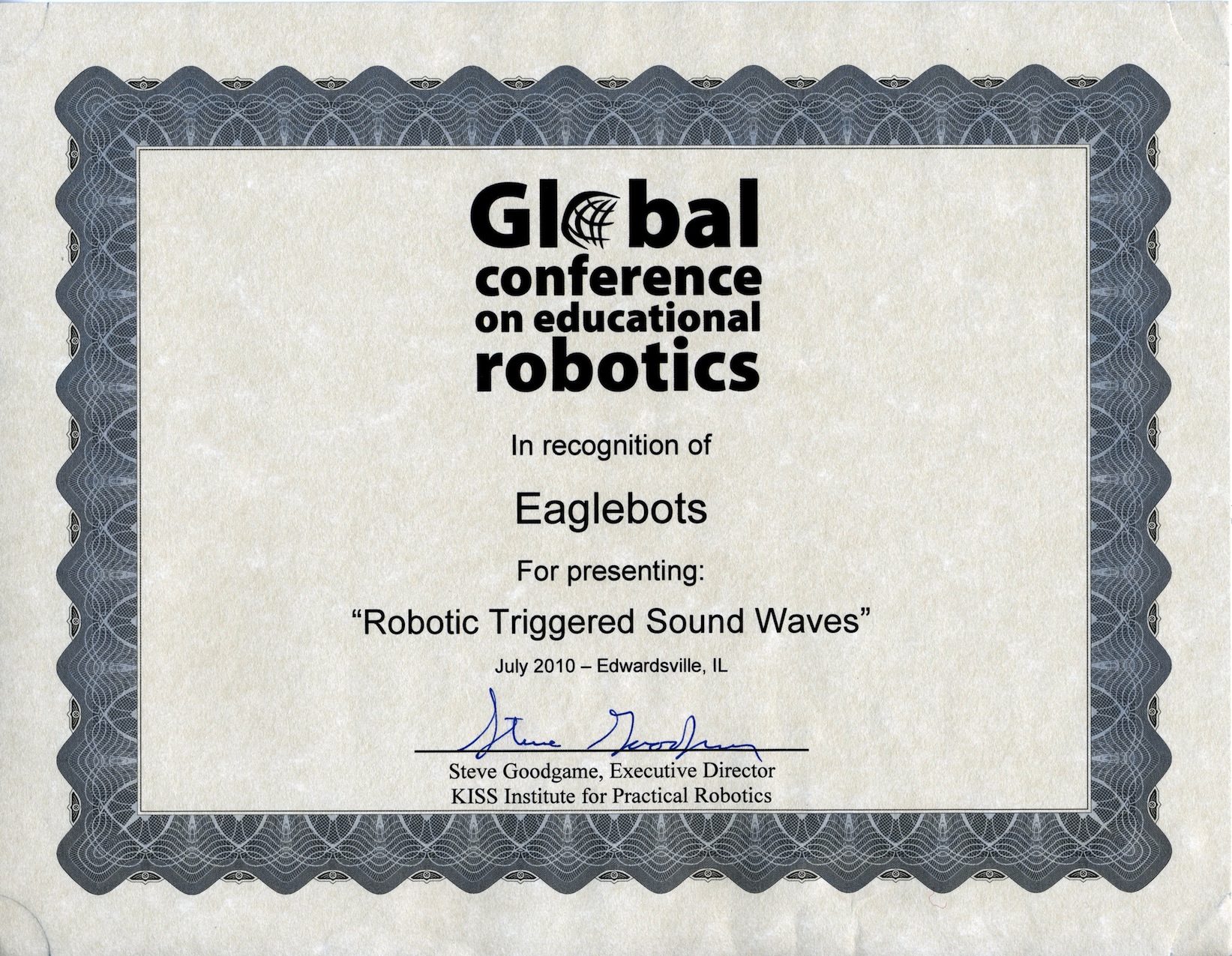 Global Conference In Educational Robotics Recognition Award - Sound