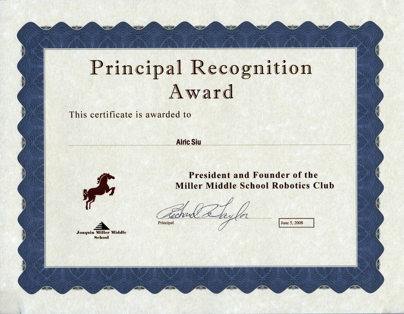 Principal Recognition Award