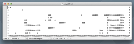 This game is special in that users may create their own game field using plain text files. creating a 12 line tall text document, the user can type in specific letters corresponding to a certain type of block and a game field parser will interpret the textfile and create the game field from this text file.