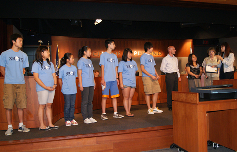 As you have heard many times before from your teachers or parents, success comes with hard work. The XBOTS have heard of it yet many times too, but this time they know it by heart. All the time they spent had a response. The XBOTS had been invited to receive a proclamation from the City of Cupertino’s Mayor, Kris Wang, and the City Council on August 3, 2010 for their hard work of holding the Mini Robotics Camp in the Cupertino Library.